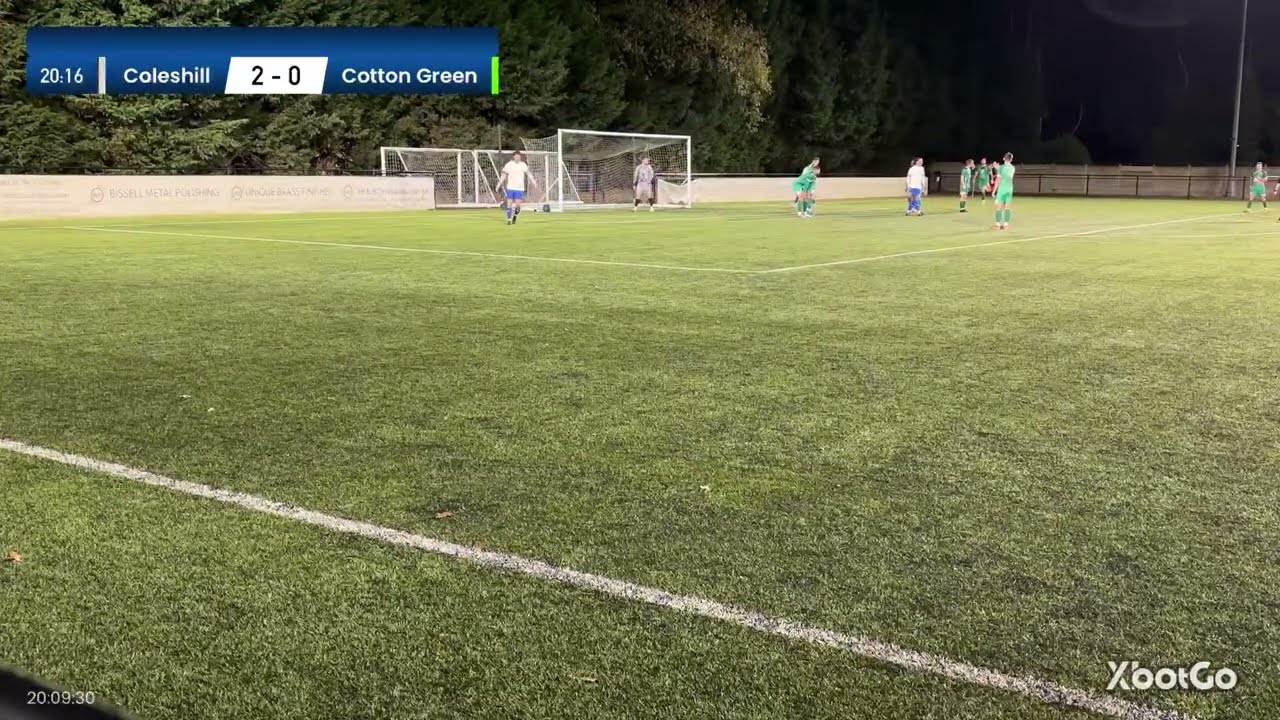 The fourth goal came just before the break. A well-worked attack saw the ball delivered into the box, where Harry Sweeney rose highest to head home. Coton Green did manage to pull one back before half-time, capitalising on a defensive lapse. James Henry’s looping effort beat the Coleshill keeper to make it 4–1.